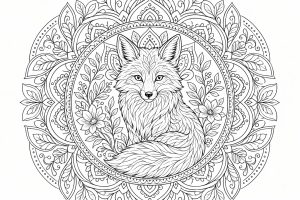 Dieses Wolf Mandala Ausmalbild für Erwachsene zeigt einen ruhigen, ausdrucksstarken Wolfskopf im Zentrum eines dekorativen Mandala-Motivs. Der Wolf ist frontal dargestellt und von symmetrischen Blättern, Linien, ornamentalen Formen und kreisförmigen Mustern umgeben. Durch die klare Anordnung wirkt das Bild kraftvoll, harmonisch und sehr gut geeignet für konzentriertes Ausmalen.